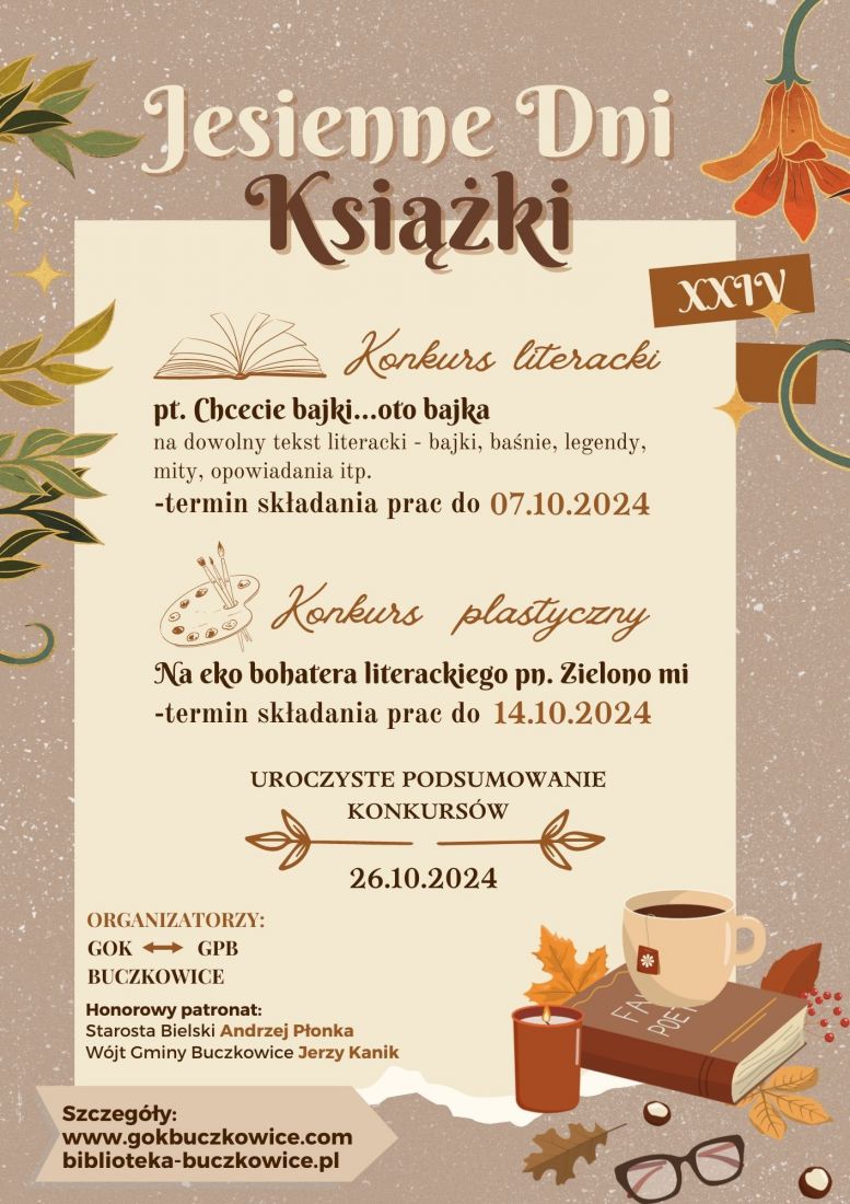 Gminny Ośrodek Kultury w Buczkowicach wspólnie z Gminną Biblioteką Publiczną w Buczkowicach wraz z filiami zapraszają do udziału w kolejnej edycji Wojewódzkiego Konkursu Plastycznego na Eko bohatera literackiego pn. „Zielono mi” organizowanych w ramach przedsięwzięcia Jesienne Dni Książki.