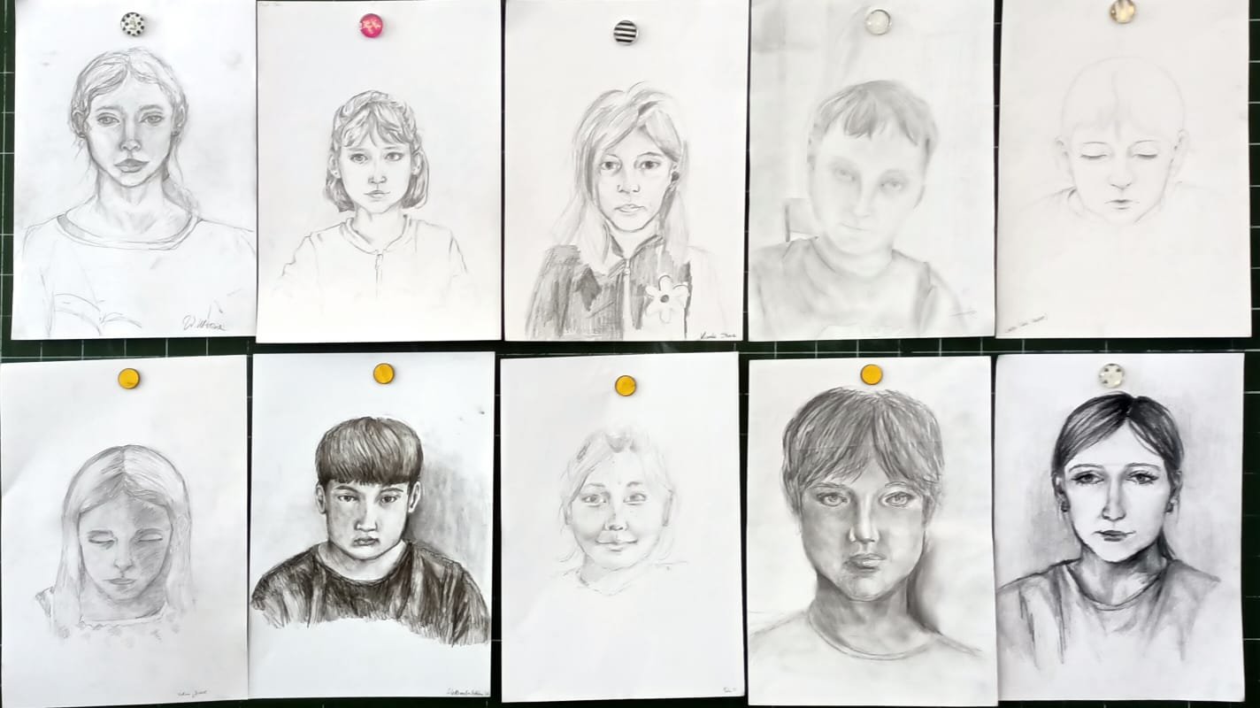 Uczniowie klasy 2c wraz z uczniami z Państwowego Liceum Plastycznego uczestniczyli w niezwykłej lekcji plastyki. Zalaminowane portrety powstałe na tych zajęciach długo ozdabiały salę lekcyjną.