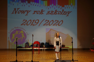 „Wakacje już minęły, jak jeden dzień…” – takimi słowami piosenki zostaliśmy powitani na uroczystym apelu z okazji rozpoczęcia kolejnego roku szkolnego. Pani Dyrektor – mgr Grażyna Lorek przywitała nas serdecznie w Auli Towarzystwa Szkolnego im. Mikołaja Reja. Szczególne słowa zostały skierowane do najmłodszych, którzy w tym roku rozpoczęli swoją przygodę ze szkołą. Pani Dyrektor życzyła wielu sukcesów, satysfakcji ze zdobywania wiedzy oraz przypomniała o bardzo ważnej dacie – 1. 09.1939 i 80. rocznicy wybuchu II Wojny Światowej. Z sentymentem pożegnaliśmy wakacje i radośnie powitaliśmy ten rok szkolny, dzięki klasie 5e, która przygotowała ciekawą część artystyczną apelu.