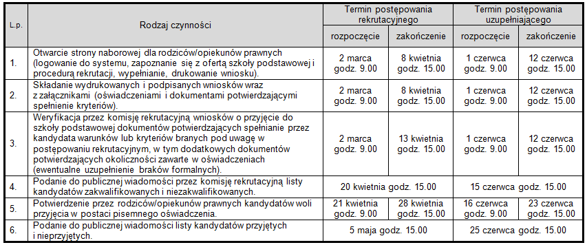 Terminarz przeprowadzania postępowania rekrutacyjnego