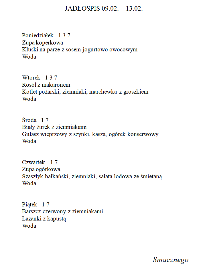 Obiady płatne są z góry za dany miesiąc.