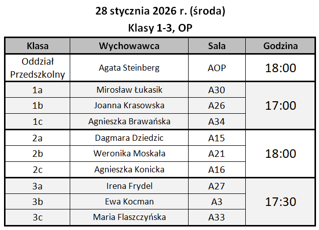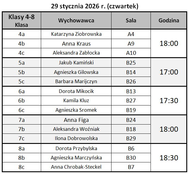 Informujemy, iż w dniach 28 oraz 29 stycznia odbędą się spotkania rodziców z wychowawcami na podsumowanie półrocza.