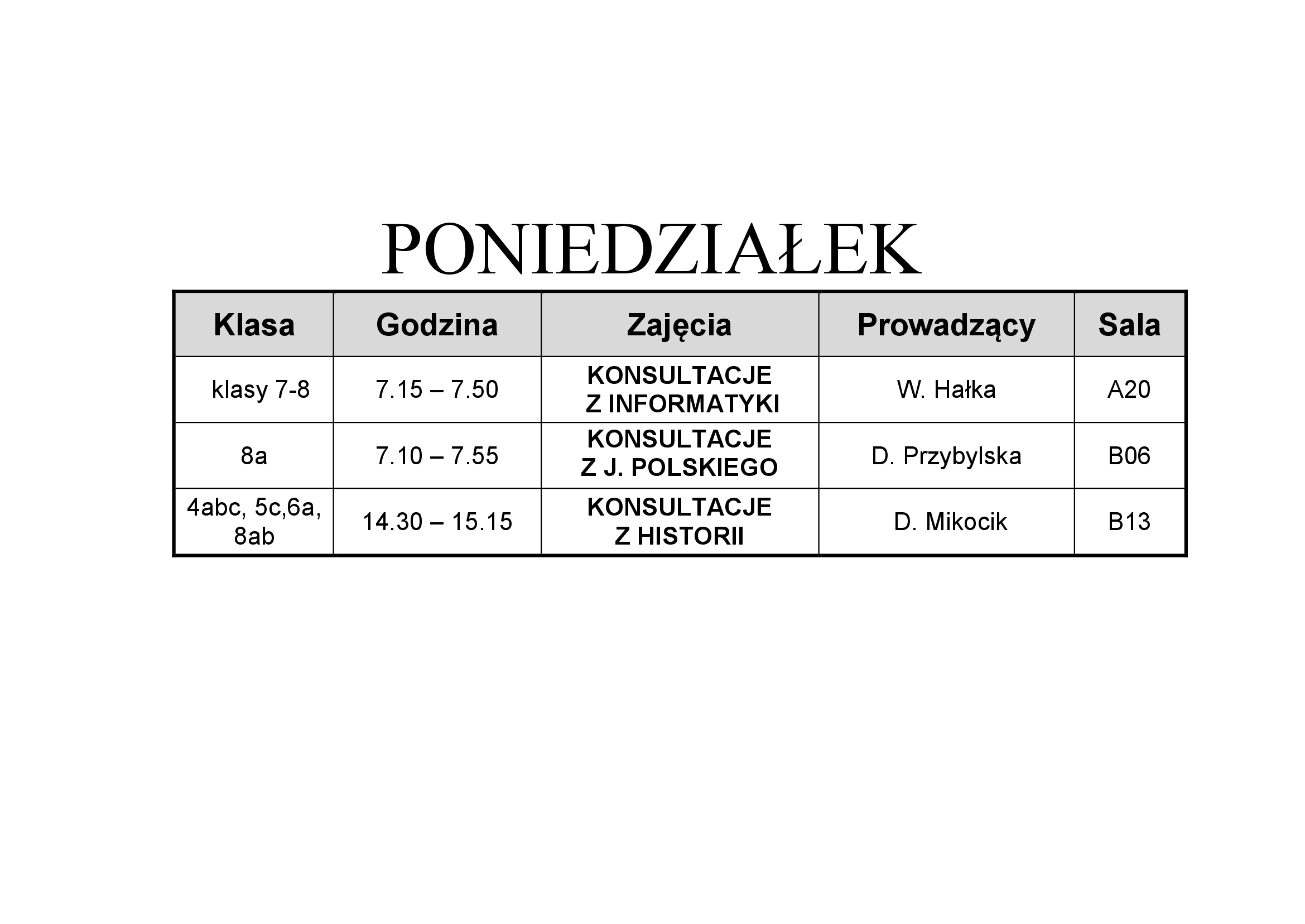 Dla uczniów » Zaj. dodatkowe 2025/2026 II półrocze » Zajęcia wyrównawcze i konsultacje IV-VIII