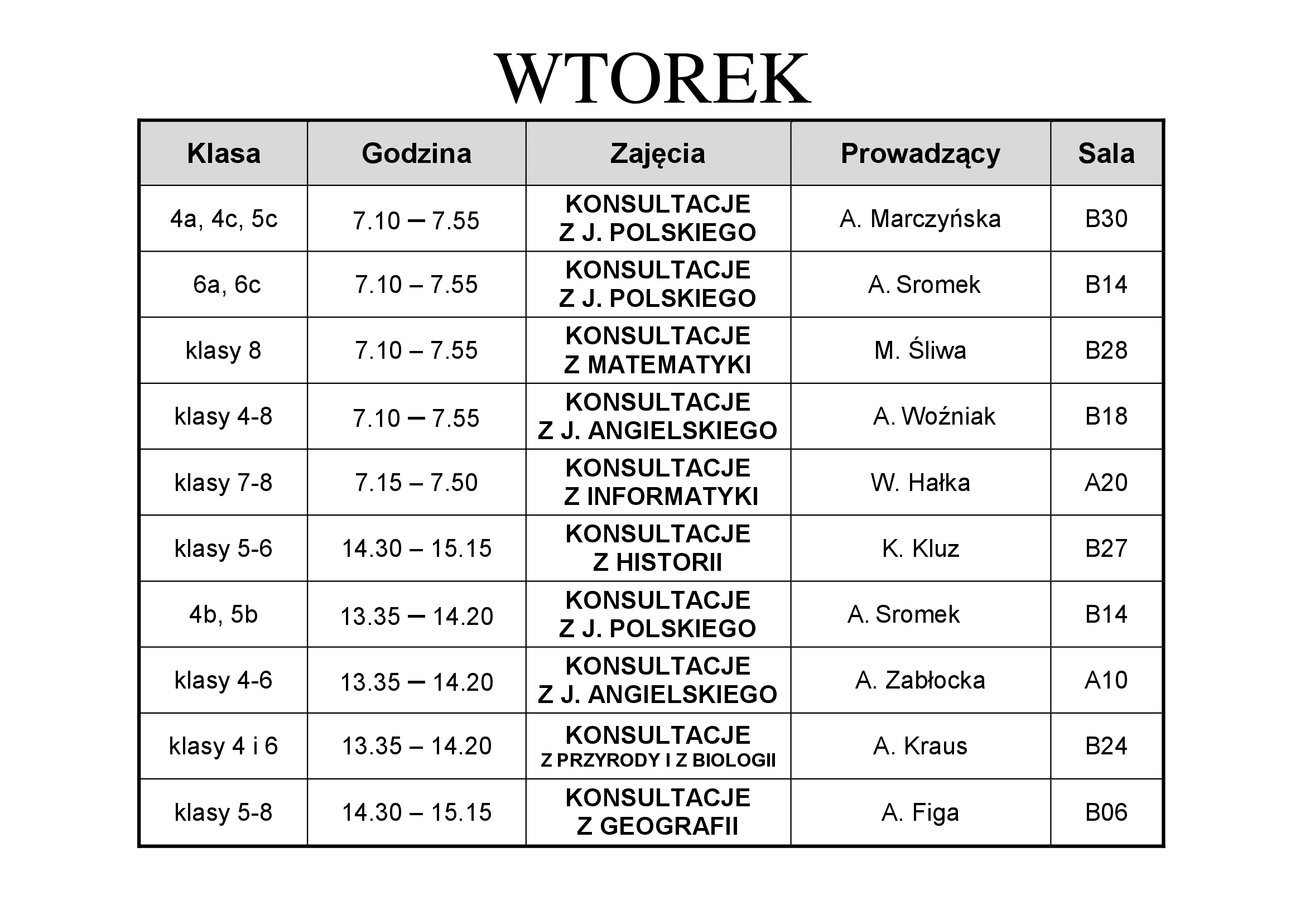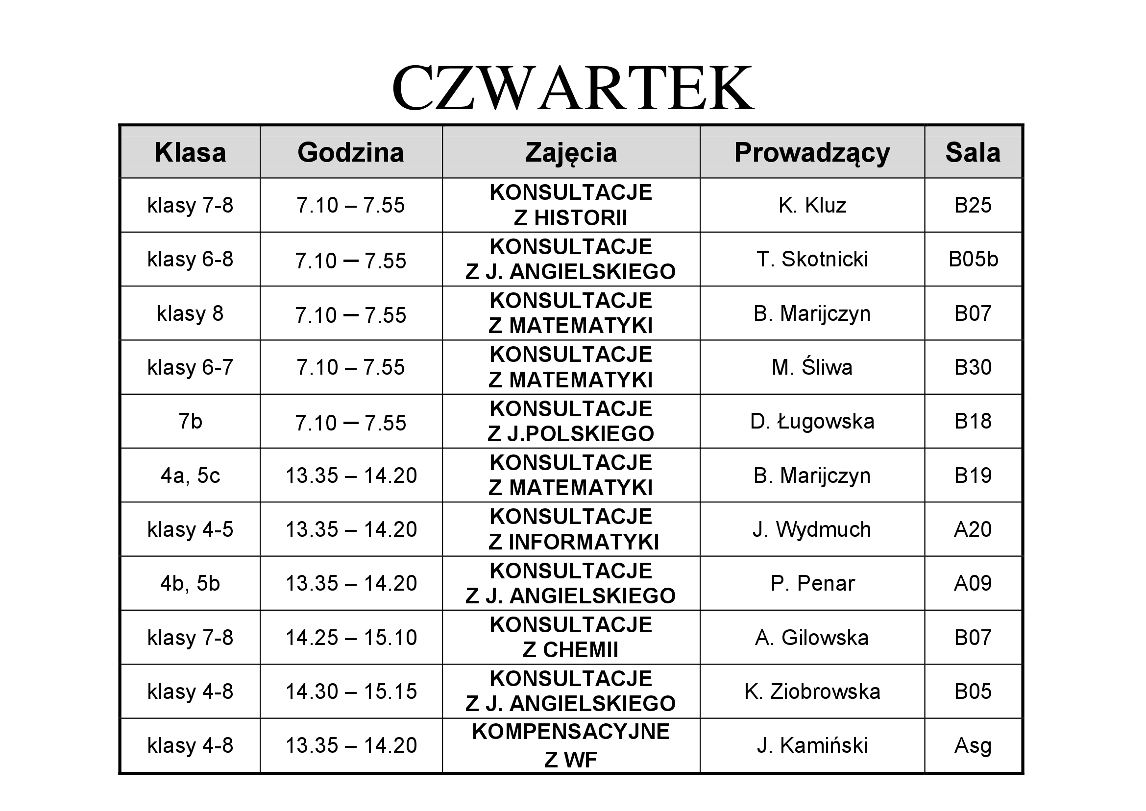 Zajęcia wyrównawcze i konsultacje IV-VIII